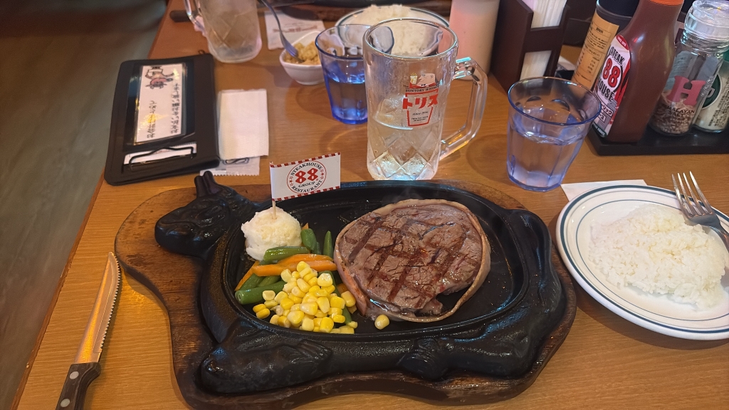 那覇空港到着後、バスでレストランに向かい、ランチタイムです。